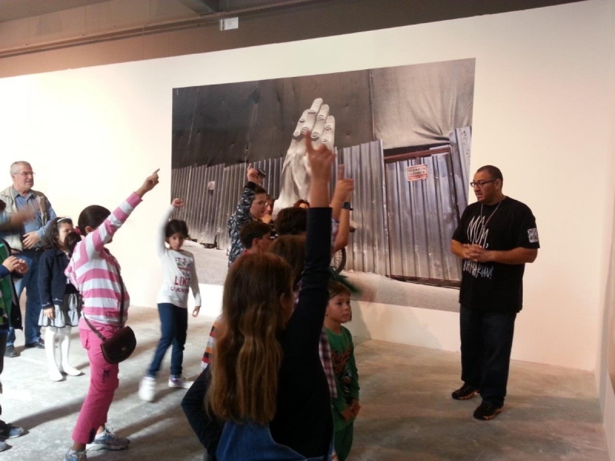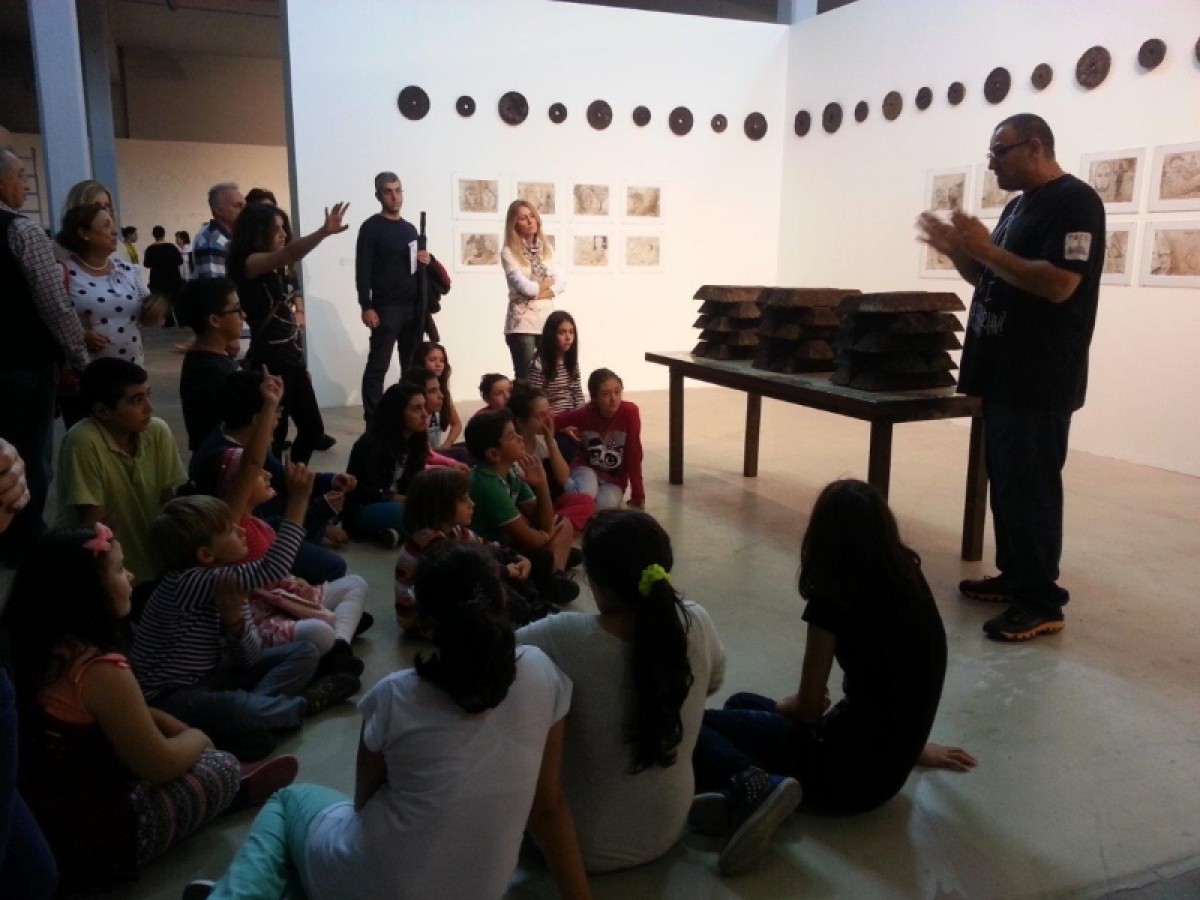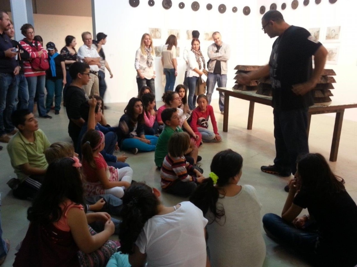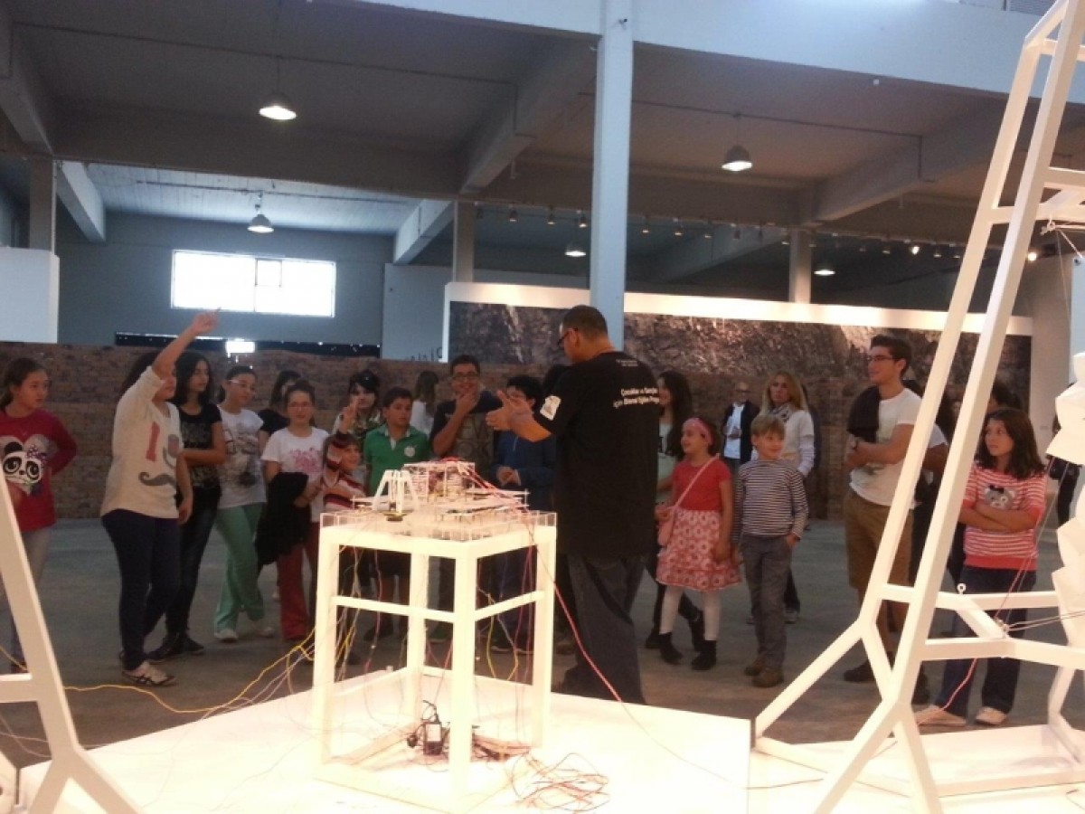 Bienal gezisinin başında çocuklarla önce bienalin ne olduğu, ardından 13. İstanbul Bienali’nin teması üzerine yaratıcı bir konuşma yapılıyor.