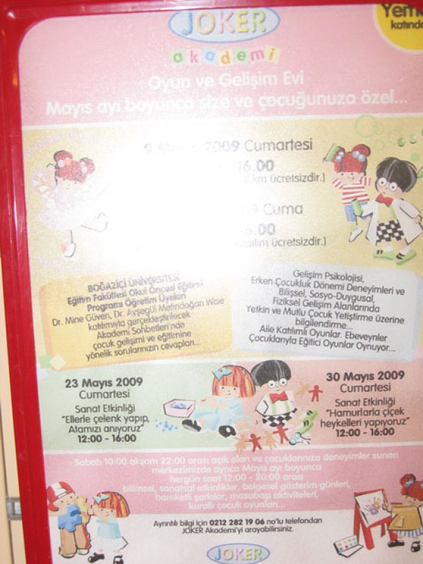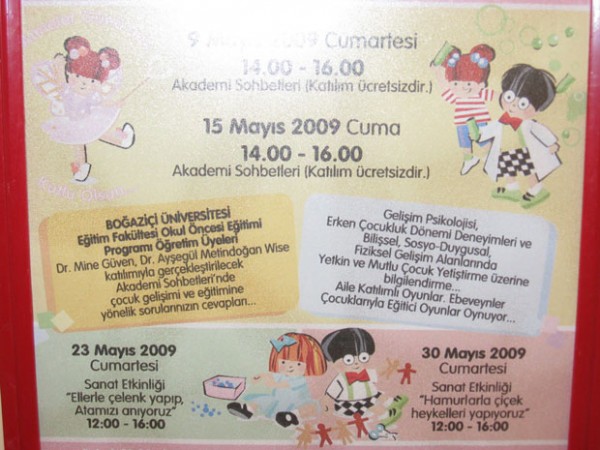 İçerde uygulanan aktiviteler de aynı şekilde Boğaziçi Üniversite öğretim üyeleri tarafından belirleniyor. Aylık belirlenen aktiviteler arasında ebeveyn, çocuğu için istediği etkinliği seçebiliyor.