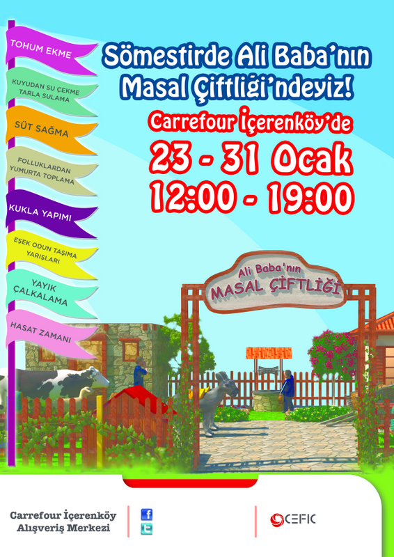 Sömestir tatili etkinlikleri kapsamında, tatilin ilk haftasında ziyaret edilebilecek olan Carrefour Ali Baba’nın Çiftliği, 23 Ocak ile 31 Ocak tarihleri arasında 12.00 ile 19.30 saatleri arasında hizmet verecek.