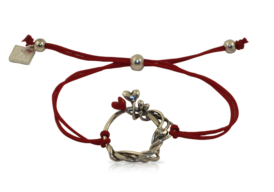 Estetik ve modern bir görünüme sahip gümüş kaplama bilekliğin üzerinde bulunan kalplerden bir tanesi kırmızı mine ile renklendirildi. Her bileğe uyacak şekilde ayarlanabilen gümüş bileklik, manevi anlamının yanı sıra; sadeliği ve şıklığıyla da dikkat çekiyor.
