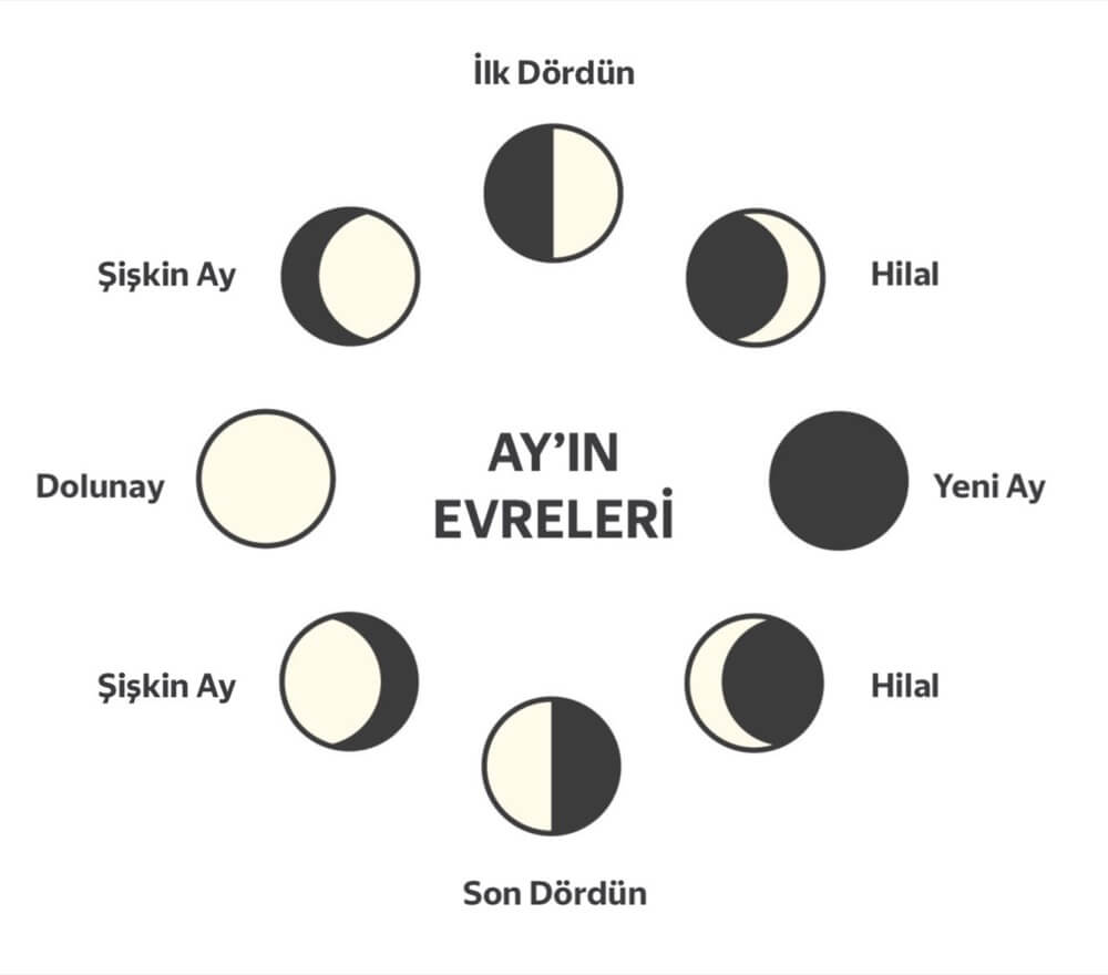 Not: Ayın hareketleri ve evreleri konusu ortaokul Fen dersi müfredatında yer almaktadır.