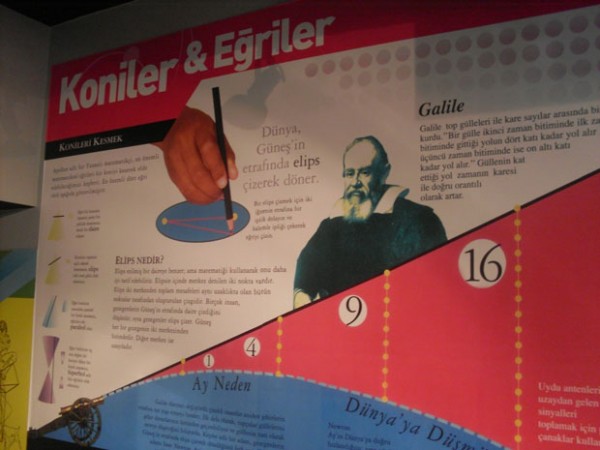 Öğrenme İstasyonları: Kuvvet, Basit Makineler, Sürtünme, Dairesel Hareket, Hız, G Kuvveti, Uçaklar Havada Nasıl Kalır?, Sıvılar, Renkler, Yansıma, Elektrostatik, Manyetizma, Dalga Hareketleri, Elektrik Akımı, Enerji, Einstein, 3 Boyutlu Görüntüler ve VR, Optik Yanılsama, Sayıların Gizemi, Pi Sayısı, Paskal Üçgeni, 3 Kenarlı Şekiller, Polyhedra & Geodesic Formlar, Parabol & Hiperbol, Simetri, Olasılık, Fraktaller, UV mikroskop, Teknolojik Gelişmeler.