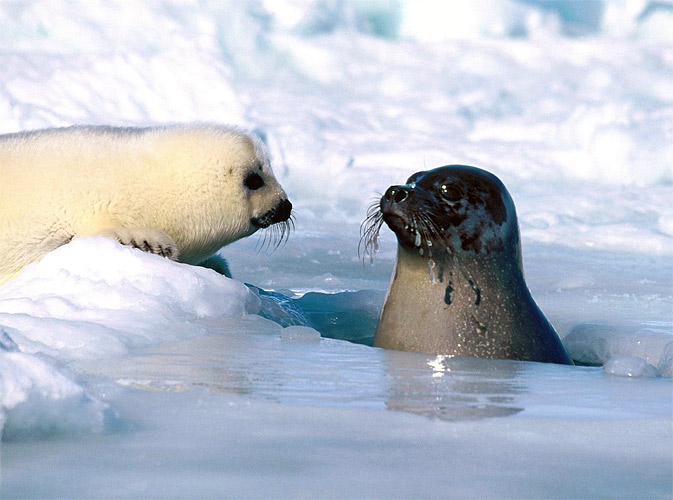 Fok balıkları dünyaya geldiklerinde, annelerine bağımlı olarak yaşarlar. Süt emmek zorunda olduğu için, annesini kaybeden bir fok, kısa süre içerisinde ölür. Bu nedenle yavru fok balıkları, çıkardıkları sesler ile annesinin kendisini bulmasına yardım eder. Çıkardıkları ses ince ve tek frekanslı bir sestir.