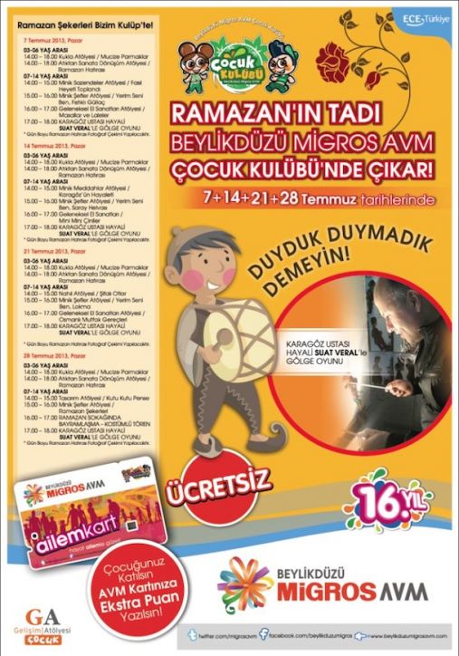 Beylikdüzü Migros AVM Çocuk Kulübü Ramazan Şenlikleri başlıyor.