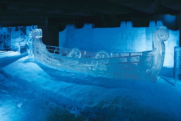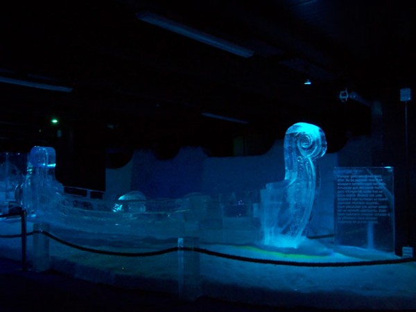 Lofoten’de bulunan 21 metre uzunluğundaki orijinal Viking gemisinin bir kopyası olan sekiz metrelik Viking gemisi, dünyanın buzdan yapılmış en büyük gemisidir.
