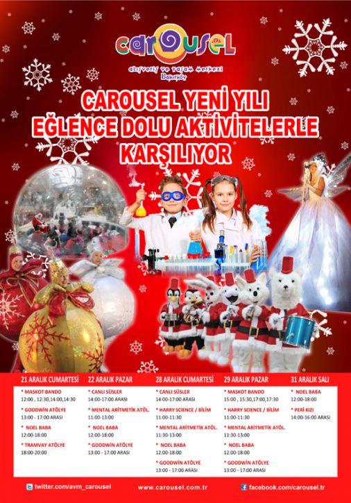 Carousel yılbaşı etkinlikleri, 31 Aralık tarihine kadar devam edecek. Çocuklarınızı bu tarihe kadar, yaratıcı sanat atölyelerinden ve zeka geliştiren mental aritmetik uygulamalarından ücretsiz olarak yararlandırabilirsiniz.