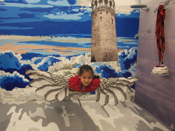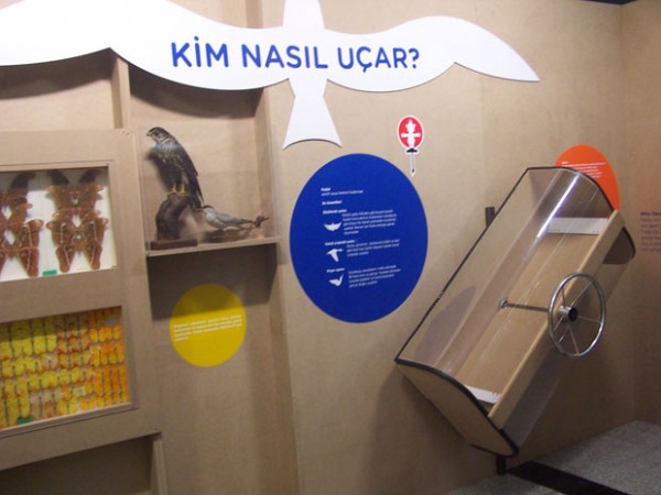 Serginin ana teması olan “uçma” kavramı, bu sergide etkileyici bir biçimde çocuklara aktarılıyor, eğlenirken öğrenmeleri sağlanıyor.