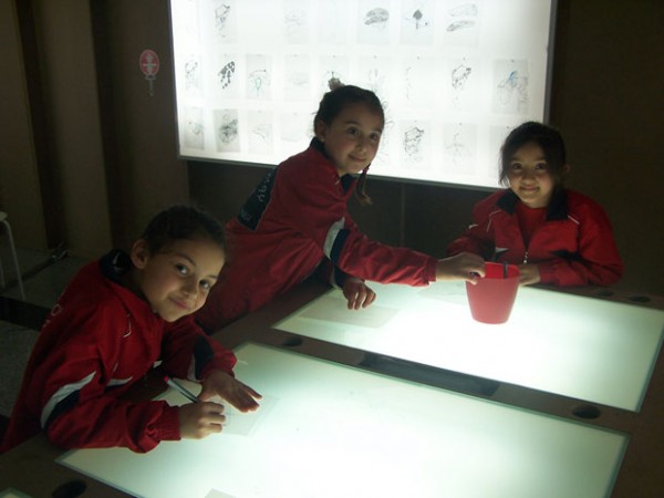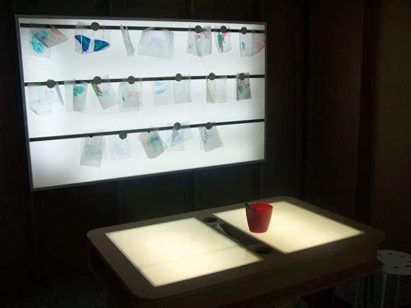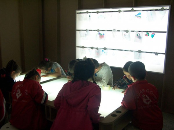 Işıklı masa bölümünde ise, çocukların yaratıcılıkları harekete geçiriliyor. Çocuklar daha önceden hazırlanmış olan uçan nesne kalıplarından dilediklerini seçiyor ve gönüllerince çizmeye başlıyorlar. Çizilen resimler ise, sonrasında ışıklı panolara asılarak sergideki yerlerini alıyor.