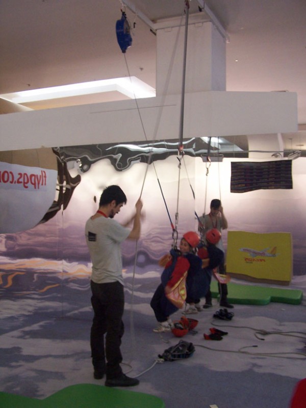 Tırmanmanın ardından, uçuş deneyimi için sergi içerisinde yine oldukça dikkat çeken, bire bir boyutta yapılmış, Fokker tipi uçak içerisine giren çocuklar, yolcu veya uçuş görevlisi olabiliyor, kokpitte pilot olup, uçuş similatörü ile uçağı kumanda edebiliyor, kontrol kulesi ile haberleşebiliyorlar.