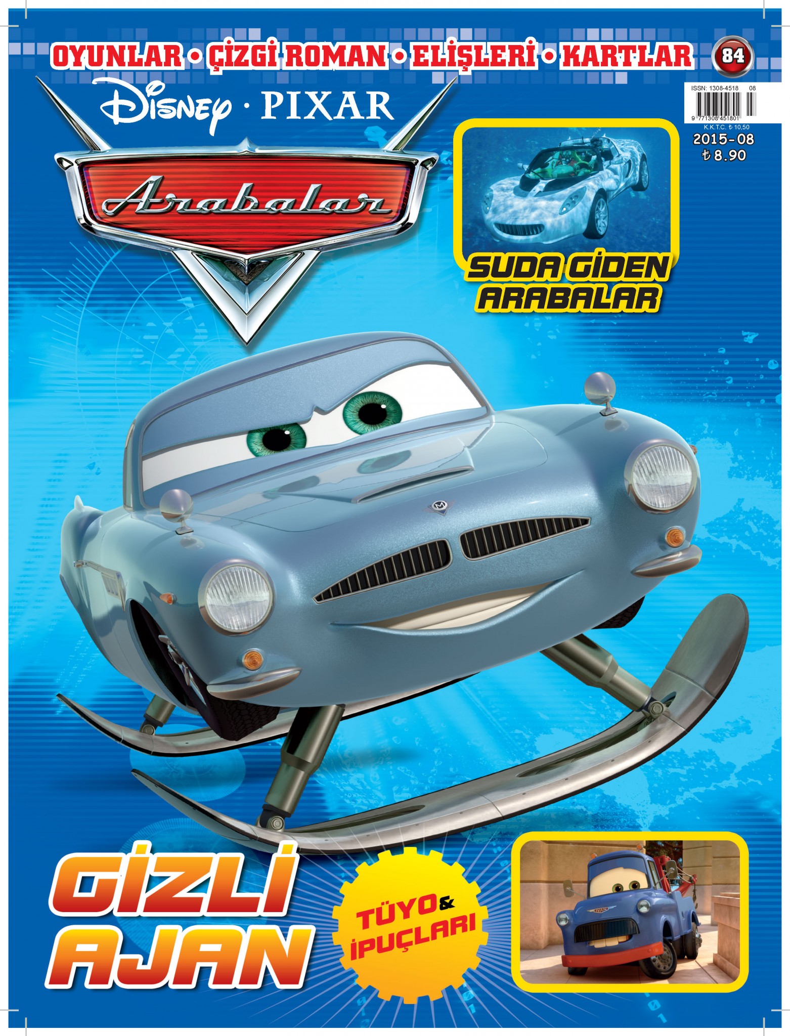 Arabalar, Ağustos 2015 sayısında çocukları “Suda Giden Arabalar” ve ” Gizli Ajan” başlıklı konular bekliyor. Üstelik oyun, çizgi roman, el işi ve kartlar bu sayıda.