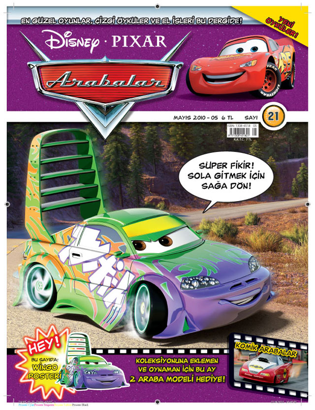 Disney Pixar’ın Arabalar Dünyası dergisinde şimşek Mc queen ve arkadaşlarının maceraları yer alıyor. Dergide posterler, oyunlar, çizgi romanlar ve el işleri ile oyun kartları ve çıkartmalar yer alıyor.