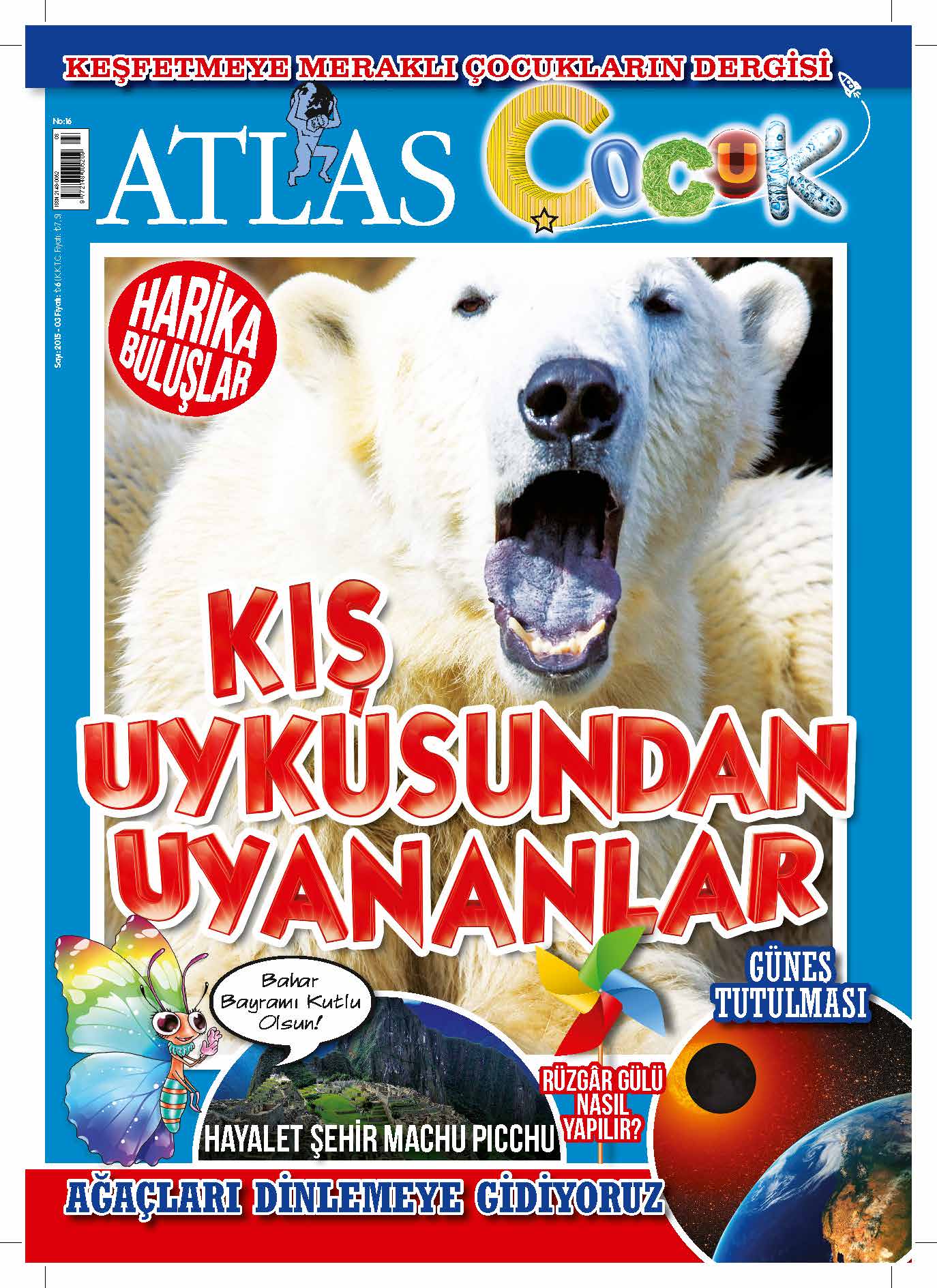 Atlas Çocuk, Mart 2015 sayısında Kış Uykusundan Uyananlar’ı ele alıyor. Güneş tutulması, rüzgar gülü yapımı ve hayalet şehir Machu Picchu hakkında bilgiler veren Atlas Çocuk Dergisi, “Harika Buluşlar” bölümü ile de önemli icatları ele alıyor.