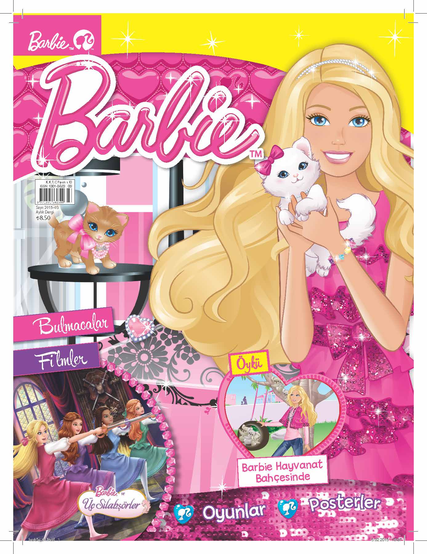 Barbie Dergisi, Mart 2015 sayısında, Barbie ve Üç Silahşörler’i ele alıyor. Filmler, bulmacalar, oyunlar ve posterler ile incelemelerin de yer aldığı Mart sayısında, Barbie Hayvanat Bahçesi’nde hikayesi de yer alıyor.