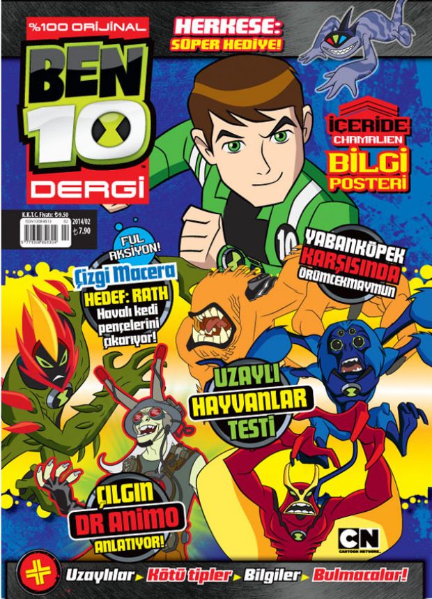 Cartoon Network’ün popüler çizgi dizisi 'Ben 10'un, 6-11 yaş arası erkek çocuk hayranlarına özel dergisinde, birbirinden farklı bilgiler ve bulmacalar yer alıyor.