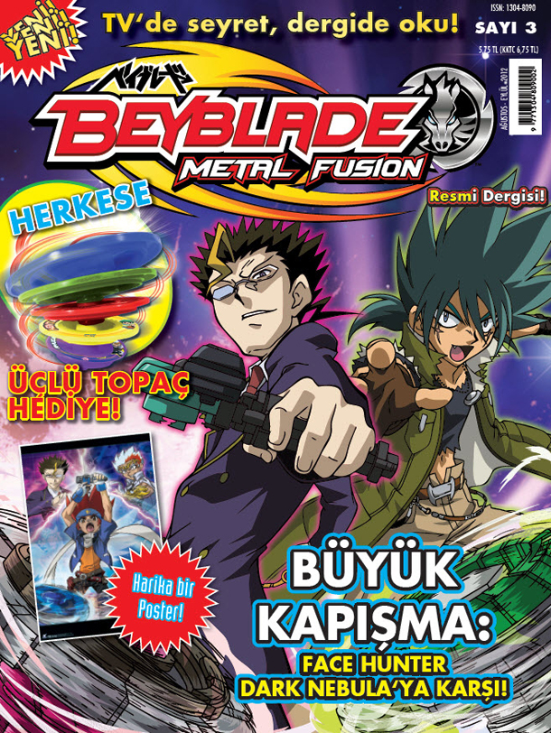Televizyonda seyret, dergide oku. Gingka Hagane ve arkadaşlarının karanlığa karşı mücadelesinin hikayesini tüm yönleri ile öğren. Beyblade türleri hakkında bilgiler, Gingka ve arkadaşları hakkında özel dosyalar, posterler, bulmacalar ve her sayıda harika bir hediye ile Beyblade dergisi tüm bayilerde, bakkal ve marketlerde.
