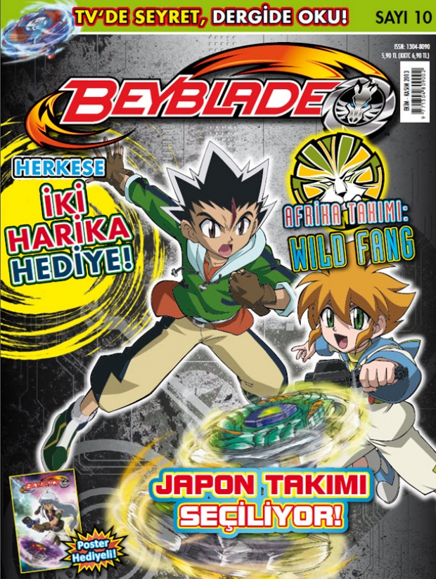 Televizyonda seyret, dergide oku. Gingka Hagane ve arkadaşlarının karanlığa karşı mücadelesinin hikayesini tüm yönleri ile öğren. Beyblade türleri hakkında bilgiler, Gingka ve arkadaşları hakkında özel dosyalar, posterler, bulmacalar ve her sayıda harika bir hediye ile Beyblade dergisi tüm bayilerde, bakkal ve marketlerde.