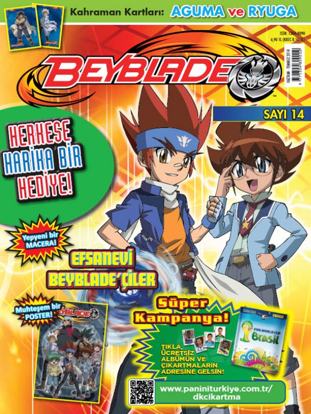 Televizyonda seyret, dergide oku. Gingka Hagane ve arkadaşlarının karanlığa karşı mücadelesinin hikayesini tüm yönleri ile öğren. Beyblade türleri hakkında bilgiler, Gingka ve arkadaşları hakkında özel dosyalar, posterler, bulmacalar ve her sayıda harika bir hediye ile Beyblade dergisi tüm bayilerde, bakkal ve marketlerde.