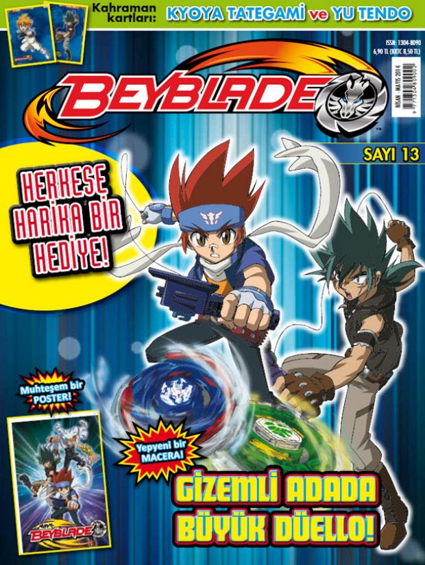 Beyblade türleri hakkında bilgiler, Gingka ve arkadaşları hakkında özel dosyalar, posterler, bulmacalar ve her sayıda harika bir hediye ile, Beyblade dergisi tüm bayilerde, bakkal ve marketlerde.