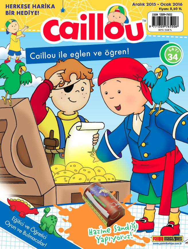 Caillou, Aralık 2015, Ocak 2016 sayısında çocukların eğlenerek öğrenmesini amaçlıyor. Yeni sayıda çocukları eğitici ve öğretici bulmacalar bekliyor. Üstelik bu sayıda çocuklar kendi hazine sandıklarını kendileri yapıyorlar.