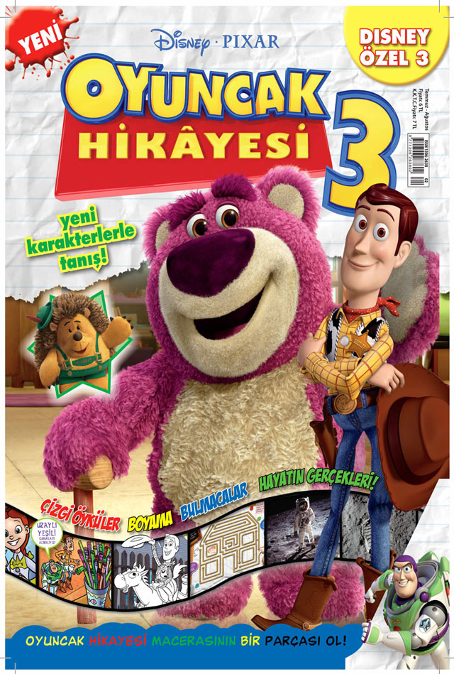Dergide Oyuncak Hikayesi filminin karakterleri, oyunları, çizgi öyküleri ve bulmacaları yer alıyor.