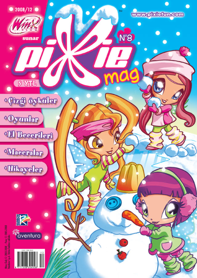 Çocukların Winx Club çizgi filmiyle tanıyıp sevdiği Pixie’ler, yani miniperiler, her ay çizgi maceraları, hem faydalı hem de çok eğlenceli bilgiler içeren sayfaları, bilmece, bulmacalarıyla çocuklara sihirli bir dünyanın kapılarını açıyor.