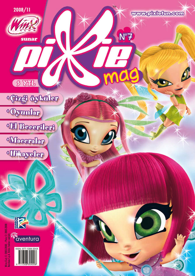 Çocukların Winx Club çizgi filmiyle tanıyıp sevdiği Pixie’ler, yani miniperiler, her ay çizgi maceraları, hem faydalı hem de çok eğlenceli bilgiler içeren sayfaları, bilmece, bulmacalarıyla çocuklara sihirli bir dünyanın kapılarını açıyor.