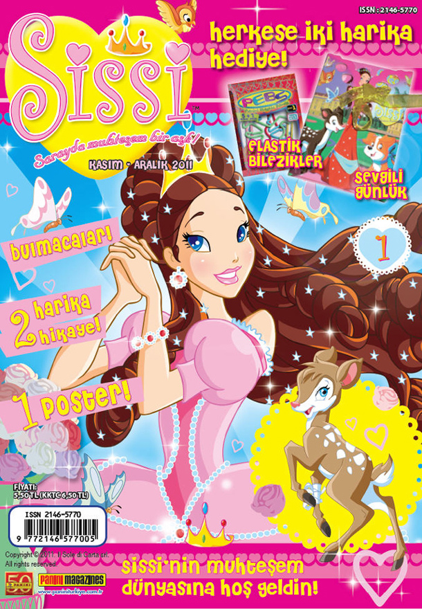 Sissi’nin muhteşem dünyasına hoş geldiniz. Aylık olarak yayınlanan dergiyle beraber kız çocuklarına uygun birbirinden güzel hediyeler de dağıtılıyor.