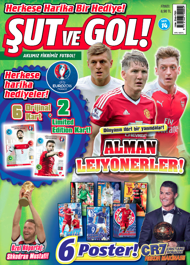 Şut ve Gol Dergisi Mart, Nisan ve Mayıs 2016 sayısında çocuklar, Shkodran Mustaf’ın öze röportajı ile futbolcuyu yakından tanıyorlar. Üstelik, 6 orjinal kart, 2 limited edition kart, 6 poster ve herkese harika bir hediye Şut ve Gol Mart, Nisan ve Mayıs 2016 sayısında.