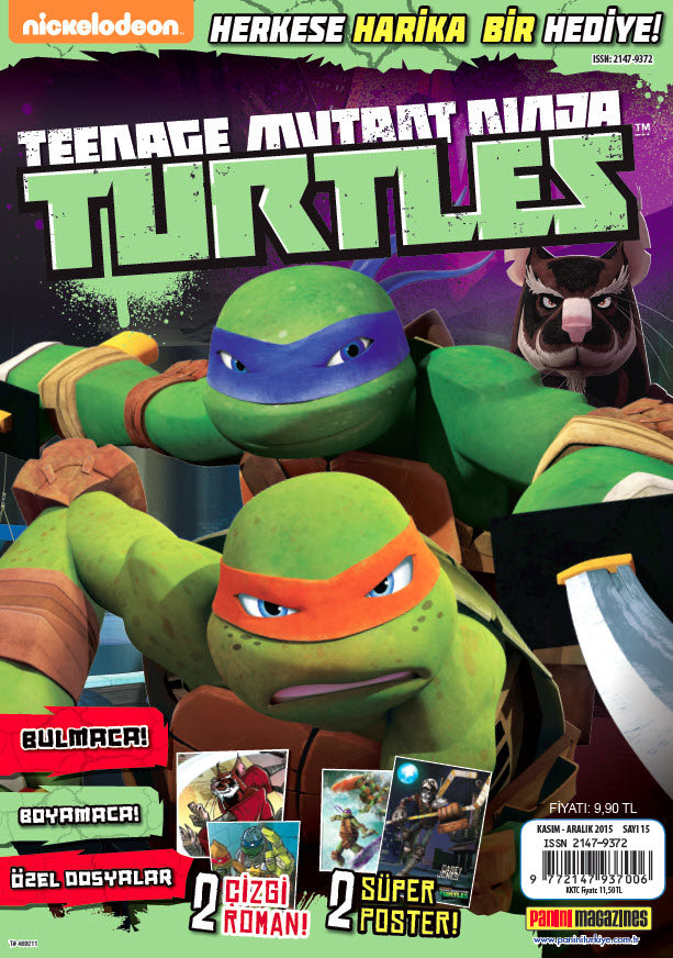 Teenage Mutant Ninja Turtles Dergisi, Kasım Aralık 2015 sayısında, 2 çizgi roman ve 2 süper poster ile okuyucularıyla buluşuyor. Bulmaca, boyamaca ve özel dosyaların yer aldığı Teenage Mutant Ninja Turtles Dergisi’nden, “Herkese Harika Bir Hediye” de Kasım-Aralık 2015 sayısında.