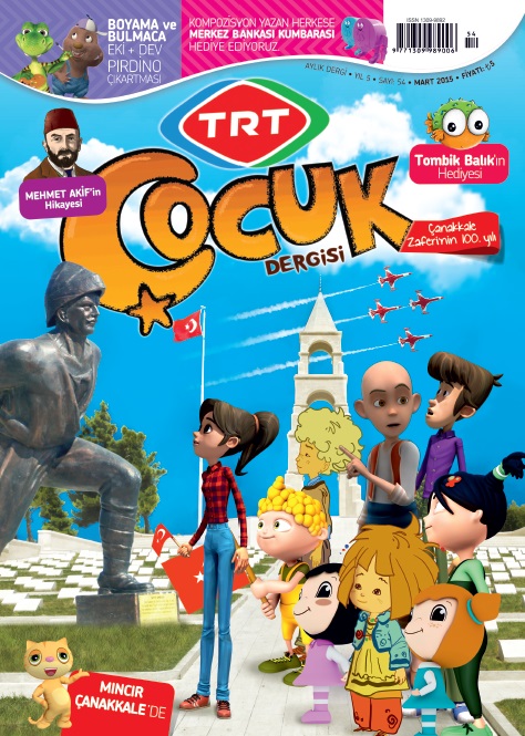 TRT Çocuk Mart 2015 sayısında Çanakkale Zaferi’nin 100. yılı kutlanıyor. Mehmet Akif Ersoy’un hikayesi anlatılıyor ve Mıncır Çanakkale’yi ziyarete gidiyor. Tombik Balık’ın özel hediyesi de Mart 2015 TRT Çocuk sayısında.