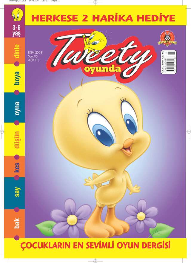 Türkiye’nin 3-6 yaş çocukları için hazırlanan ilk oyun ve bulmaca dergisi ” Tweety Oyunda ” yayın hayatına başladı ! Çocukların sevgilisi Tweety ve obur kedi Sylvester eğlenceli maceralarıyla bu dergide karşınızda.Ocak 2007’den itibaren 2 ayda bir yayınlanacak olan ” Tweety Oyunda ” çocuğunuzun gelişimine uygun gözlem ve düşünme oyunları, kes-yapıştır çalışmaları, hikayeler içeriyor.46 sayfalık dergide oyunlar anne-babalarla, kendi kendine ya da arkadaşlarla oynanabilecek özellikte tasarlandı.
