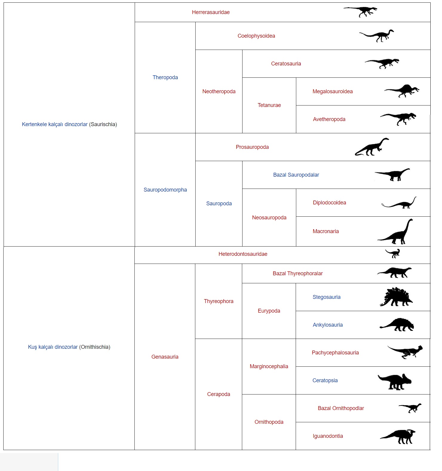 - Dinozorlar sürüngen olarak sınıflandırılır. Kalçanın yapısına göre iki gruba ayrılırlar. Bir grupta kertenkele benzeri kalçalar, diğer grupta kuş benzeri kalçalar vardır.