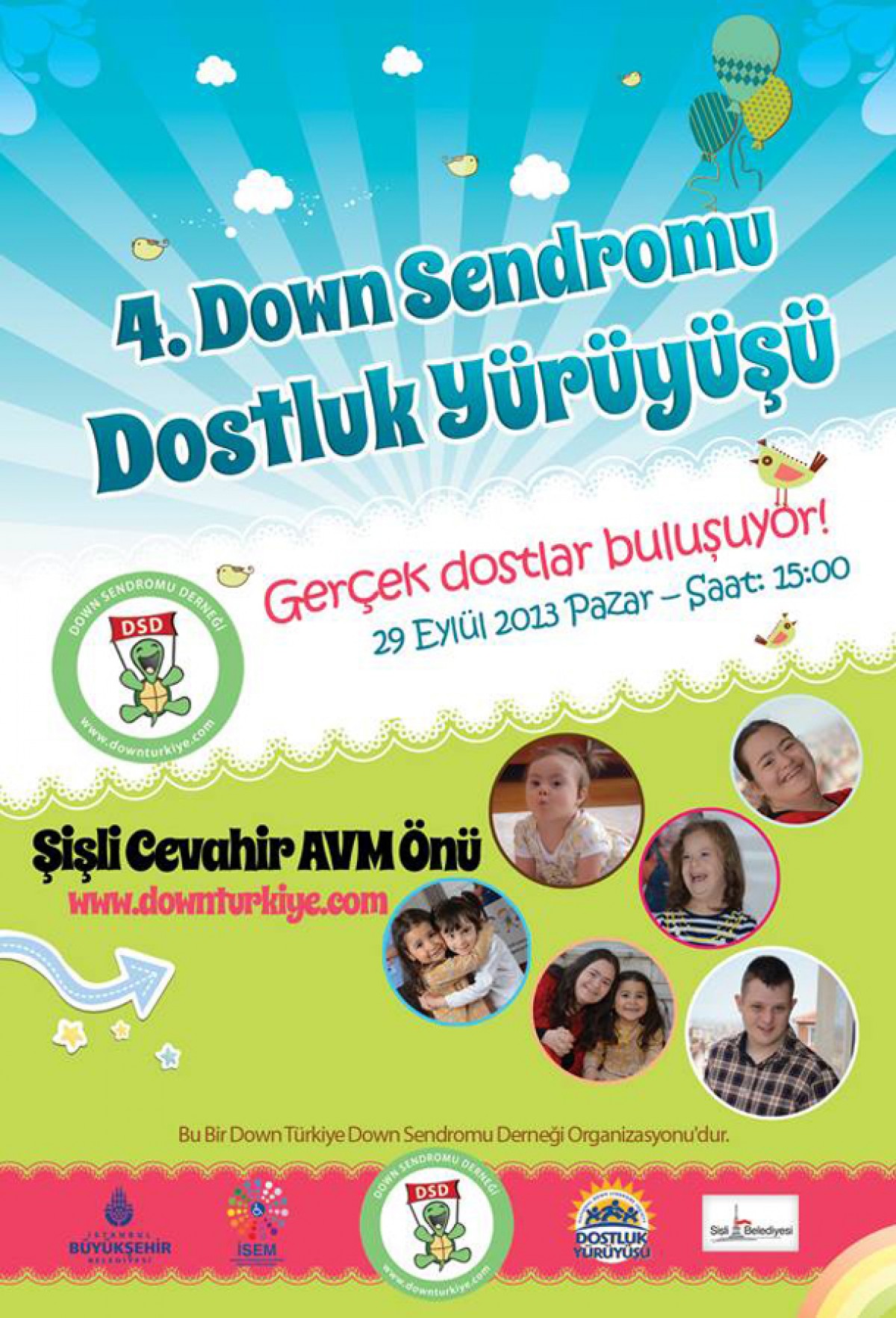 Down Türkiye, Down Sendromu Derneği kurulalı dört yıl oluyor. Her yıl olduğu gibi bu yıl da, farkındalığı arttırmak, Down Sendromluların hayattaki konumlarına dikkat çekmek ve onların da var olduğu gerçeğini unutmamak için gerçek dostlar bir araya geliyor.