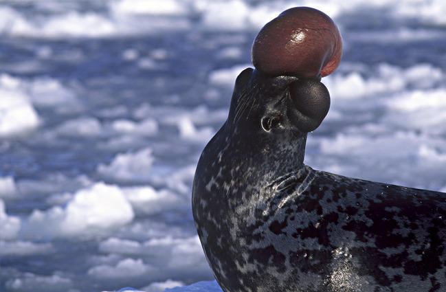 Yüzlerinde bulunan balonları ile dünyanın en ilginç hayvanlarından biri olan balonlu foklar, Atlantik’te yaşar. Beslenmek için sıklıkla suya giren foklar, burunlarının üzerinde bulunan balonu çiftleşmek için ya da düşmanlarını korkutmak için kullanırlar.