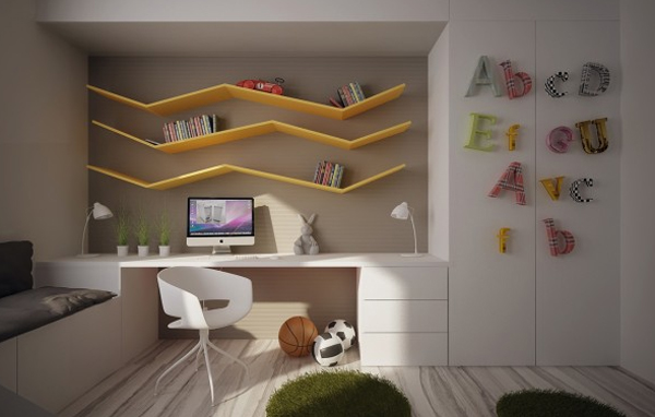 Verimli ders çalışma için çocuk odası nasıl olmalıdır? Çocuğa uygun bir çalışma masası ve kitaplarını muhafaza edeceği raflar çalışma alanında yer almalıdır.