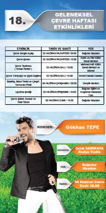Gökhan Tepe’nin Konser vereceği Çevre Şöleni’ne herkes davetlidir.