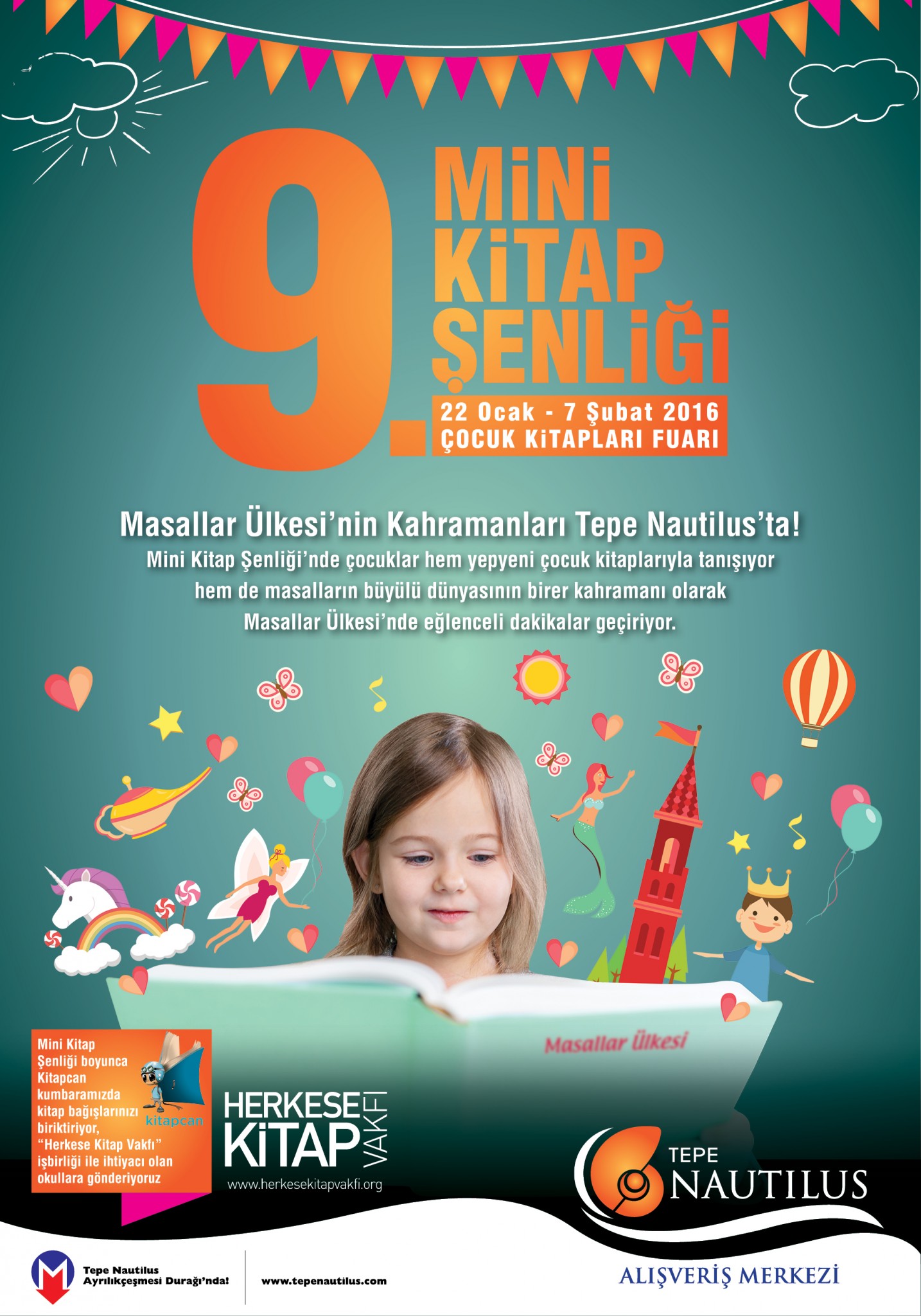 Mini Kitap Şenliği süresince her gün, minik ziyaretçiler büyülü dünyaların kapılarını aralayacaklar. Etkinlik kapsamında çocuklar, masallar ülkesinin birer kahramanı olacaklar. Tepe Nautilus AVM’nin etkinlik alanlarına kurulacak olan “Masallar Ülkesi”nde çocuklar, farklı masalları öğrenme, deneyimleme ve oyunlarla eğlenebilecekler. Sevilen masal kahramanları, Rapunzel, Pamuk Prenses, Pinokyo, Karga ile Tilki ve Alaaddin gibi bir birinden eğlenceli masal kahramanları “Masal Ülkesi”nde sahne alacaklar ve gösterileri ile çocuklarla bir araya gelecekler.