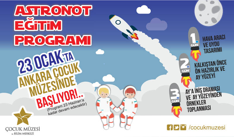 Astronot Eğitim Programı 23 Ocak sömestir itibariyle 23 Haziran’a kadar Ankara Çocuk Müzesi ve Bilim Merkez’inde minik astronotlarla buluşmak için sabırsızlanıyor. Türkiye’de ilk ve tek çocuk müzesi olarak adından bahsettiren Ankara Çocuk ve Bilim Müzesi Astronot Eğitim Programı ile çocukların karşısına eğlenceyi ve eğitimi bir arada sunan eşsiz bir deneyim olarak çıkacak. Armada Bilim Merkez’inde bugünün minik geleceğin büyük astronotlarıyla başlayacak olan etkinlik bir astronot eğitim programı bu programda çocuklara hava aracı ve uydu tasarımından kalkıştan önce ön hazırlığa kadar birçok keyifli bilgi aktarılacak. Aynı zamanda etkinlikte miniklere Ay’a iniş draması ayın yüzeyindeki örnekler toplama gibi canlandırmalar yaptırılacak ve tüm bunları gerçekleştirilirken gerçekmiş havası verilmesi adına miniklere oksijen tüpü, maskeler, roket tüpleri sunulup sis ve seslerle gerçek bir uzay havası yaratılacak. Çocuklar bu keyif dolu ilginç bilim etkinliğinde beş duyu organını kullanarak gerçek bir uzay seyahatindeymiş gibi o anı yaşayacaklar.