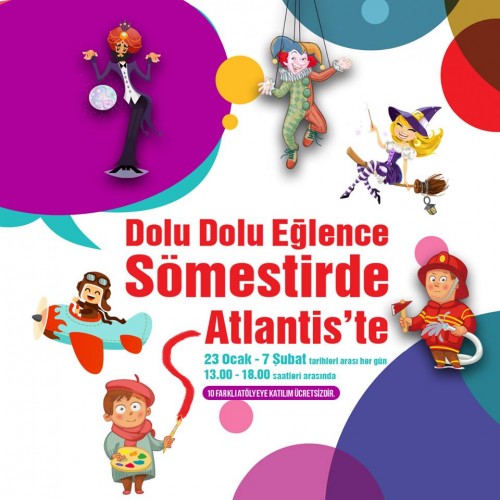 Atlantis AVM Yarıyıl Etkinlikleri, sömestr boyunca Ocak ve Şubat aylarında Atlantis AVM’de çocuklarla buluşacak. Çocuklara özel olarak kurulan etkinlik alanında katılımcılar, 10 farklı atölyeye katılma imkanını yakalayacaklar. Etkinlik yarıyıl tatili boyunca her gün 13:00-18:00 saatleri arasında gerçekleşecek.