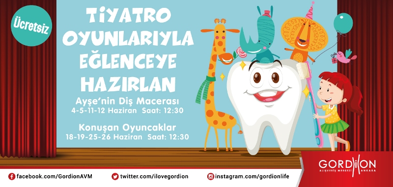 Ayşe’nin Diş Macerası, Haziran ayında Ankara Gordion Alışveriş Merkezi’nde çocuklarla buluşacak. Oyunda Ayşe, dişi ile çeşitli maceralara atılacak. Ayşe’nin Diş Macerası, diş sağlığına değinecek. Oyun çocukların eğlenirken öğrenmesini amaçlayacak.