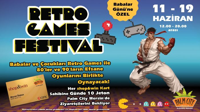 Babalar Günü’ne Özel Retro Games Festivali, 11 – 19 Haziran tarihlerinde 12:00 – 20:00 saatleri arasında Mersin Palm City Alışveriş Merkezi’nde babalar ve çocuklar ile buluşacak.