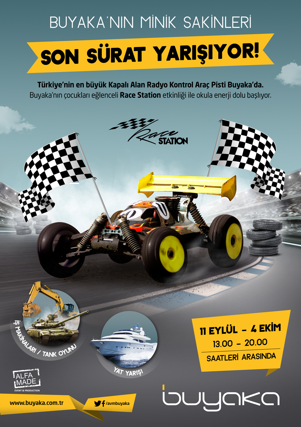 Türkiye’nin en büyük kapalı alan radyo kontrol araç pistinde eğlenecek olan çocuklar, Race Station etkinliği ile de uzaktan kumanda ile Formula 1 yarışları yapacak.
