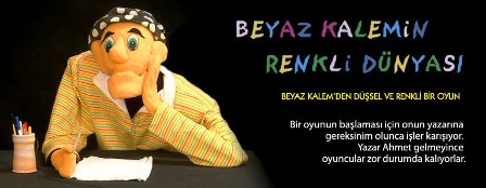Beyaz Kalemin Renkli Dünyası, Mayıs ayında Ankara Tiyatro Tempo’da çocuklarla buluşacak. İşler oyunda oyunun başlayabilmesi için yazarında ihtiyaç duyunca karışır. Oyunun başında meydana gelen soruna çözüm üretemeyen yazar gelemeyince oyuncular zor bir durumun içine düşerler. Yazar gelmeyeince onun kuklasını oyuna dahil ederek çözüm üretmek isteyen oyuncular yazarın uykusunda gördüğü rüya ile oyunun problemli kısmını çözüme ulaştırıyorlar. Yazar Ahmet tüm bunlar karşısında büyük şaşkınlığa uğrar.