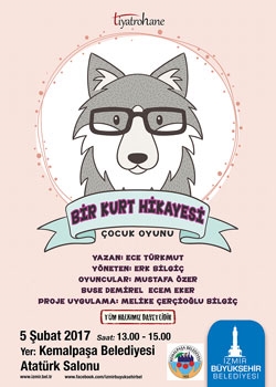 İzmir çocuk etkinlikleri kapsamında Kemalpaşa Belediyesi tarafından düzenen, Bir Kurt Hikayesi çocuk tiyatrosu 3 yaş ve üzeri çocuklarla buluşacak. Kemalpaşa Belediyesi Atatürk Salonu’nda 5 Şubat Pazar günü 13.00 ve 15.00 saatlerinde ücretsiz sahne alacak.