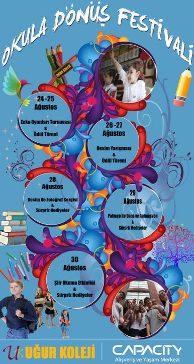 Capacity’nin 24-30 Ağustos 2013 tarihleri arasında Uğur Koleji ile birlikte düzenleyeceği birbirinden eğlenceli aktiviteler, yeni dönemde ders zili çalmadan önce çocuklara keyifli saatler yaşatacak.