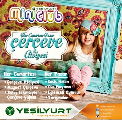 Çocukların hayal güçlerini kullanacakları çerçeve yapım etkinliği kapsamında Magnet çerçeve ve kolaj tekniğiyle çerçeveler tasarlanacak. Atölye dahilinde çocukların kişisel beceri yönleri geliştirilecek. Aynı zamanda Mini Club’ta her pazar sosis balon, yüz boyama, yarışmalar ve eğlenceli oyunlar gerçekleştirilecek.
