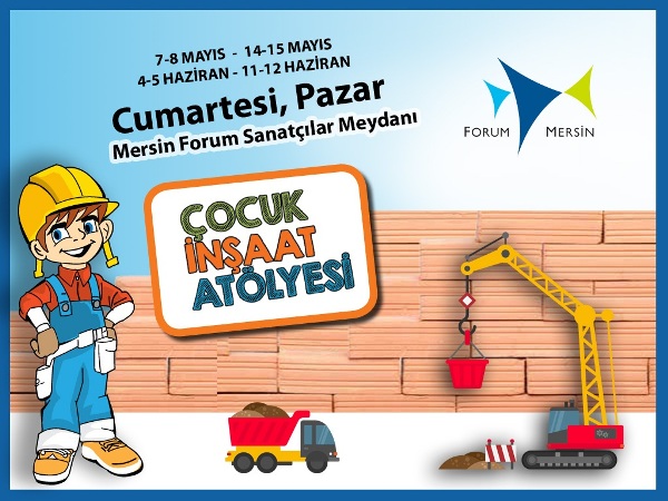 Çocuk İnşaat Atölyesi, Mayıs ve Haziran ayında Mersin Forum Alışveriş Merkezi, Sanatçılar Meydanı’nda çocuklarla buluşacak. Çocuk İnşaat Atölyesi kapsamında çocuklar, oyunlar oynayarak bir konut inşaatının aşamalarını öğrenecekler. Ayrıca çocuklar, mimarlıktan mühendisliğe inşaat sürecine dahil olan meslekleri yakından tanıma fırsatını yakalayacaklar.