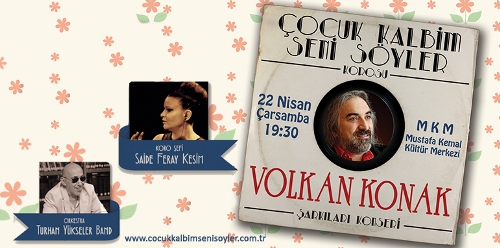 Etkinlik kapsamında Çocuk Kalbim Seni Söyler Korosu, bu defa Volkan Konak Şarkılarını seslendirecek. Koro Volkan Konak şarkıları konseri, Turhan Yükseler’in orkestra ve Saide Feray Kesim’in koro şefliğinde sunacak. Ayrıca konsere ünlü sanatçı Volkan Konak eşlik edecek.