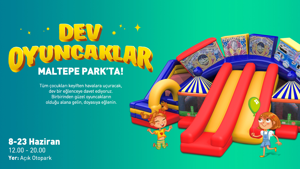 Maltepe Park Tüm çocukları keyiften havalara uçuracak dev bir eğlenceye davet ediyor. Dev Oyuncaklar 8-23 Haziran tarihleri 12.00 – 20.00 saatleri arasında Maltepe Park’ta açık otoparkta.