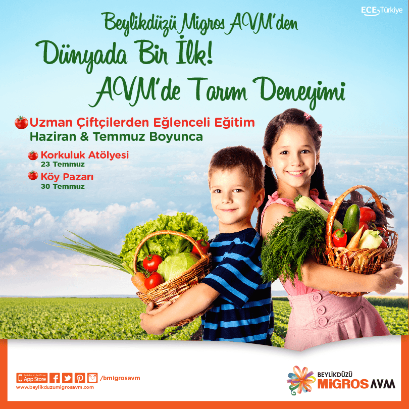Beylikdüzü Migros AVM, Haziran ayından bu yana düzenlediği çocuklara özel tarım yapma alanına devam ediyor. 23 Temmuz ve 30 Temmuz’da gerçekleştirilecek olan Doğal Tarım Alanı Projesi ile çocuklar AVM içinde tarım deneyimi yaşayacak. Yapılacak olan etkinliklerde çocuklar hem eğlenecek hem de doğal yaşam hakkında fikir sahibi olacak.